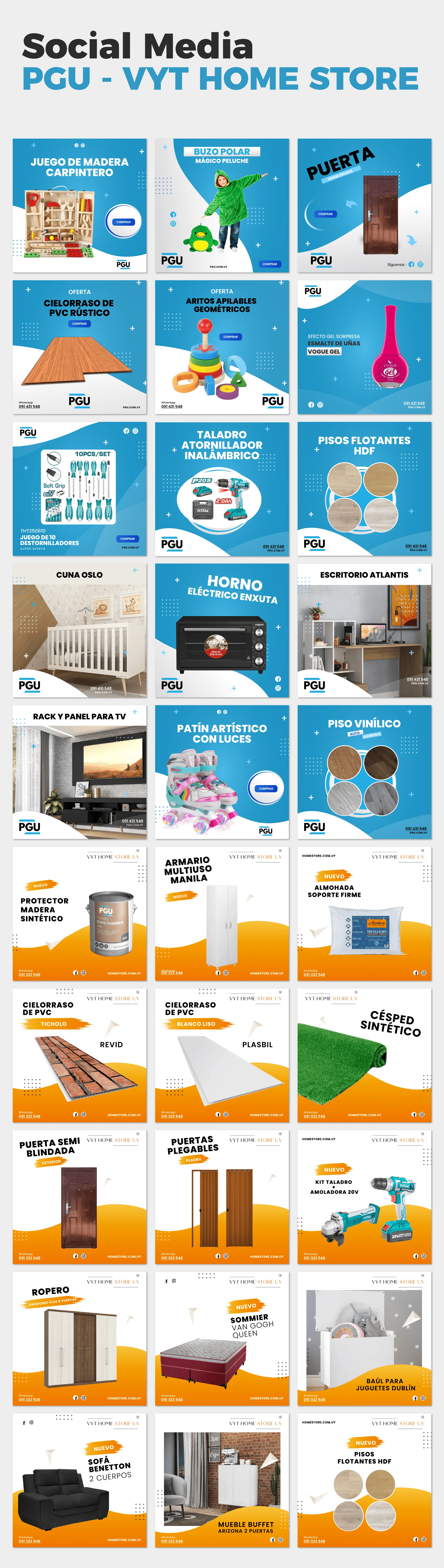 Desde Planner acompañamos a PGU Uruguay, empresa dedicada a la venta de materiales para la renovación del hogar y la construcción, con el diseño de piezas para Instagram que transmiten calidad, modernidad y confianza.