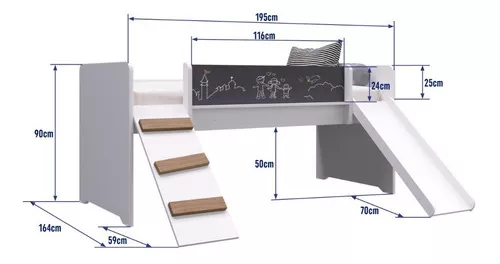 – Ancho: 164 cm contando la escalera y el tobogán